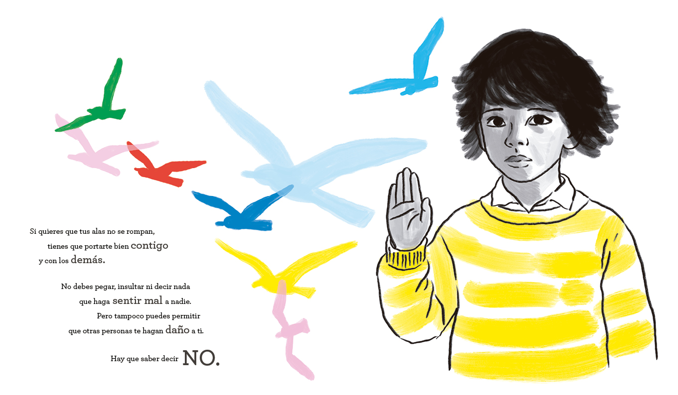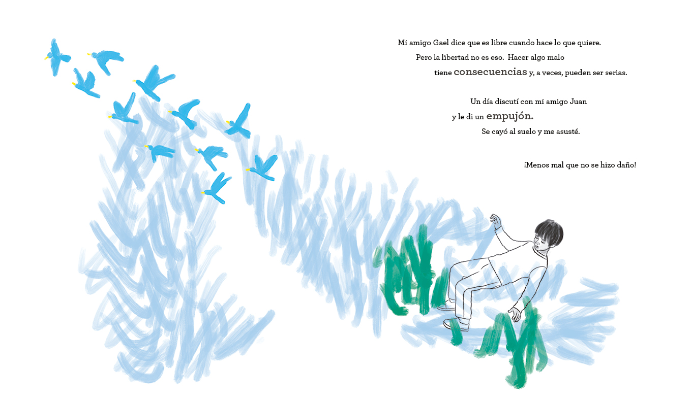 Complete descriptionUna oda a la libertad y a su verdadero significado. ¿Sabías que todos somos libres y tenemos alas? Pero aprender a volar lleva su tiempo y exige dedicación. Ser libre no es hacer lo que quieras, porque todos nuestros actos tienen consecuencias. Lo más importante para que tus alas no se rompan es portarte bien contigo y con los demás. Todos los que te rodean también tienen derecho a mover sus alas por dónde quieran. Escucharlos y respetarlos es parte de la libertad.