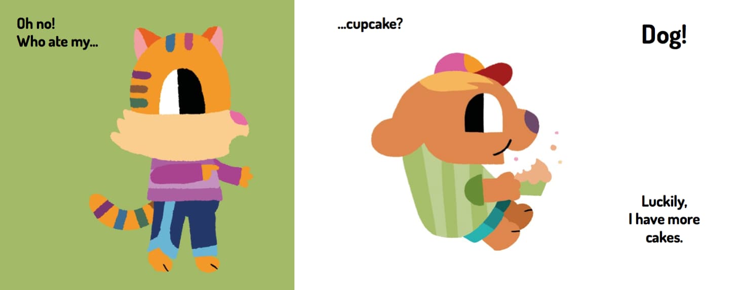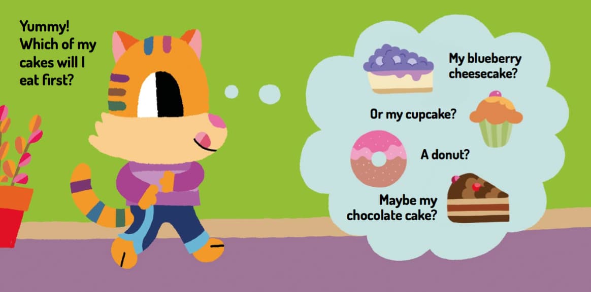 I’m so hungry! I could eat some of my cakes… Like my blueberry cheesecake, my cupcake, a donut… or even a chocolate cake! But wait a moment! Who ate all my cakes? Lift the flaps and discover who ate all of Cat’s cakes!