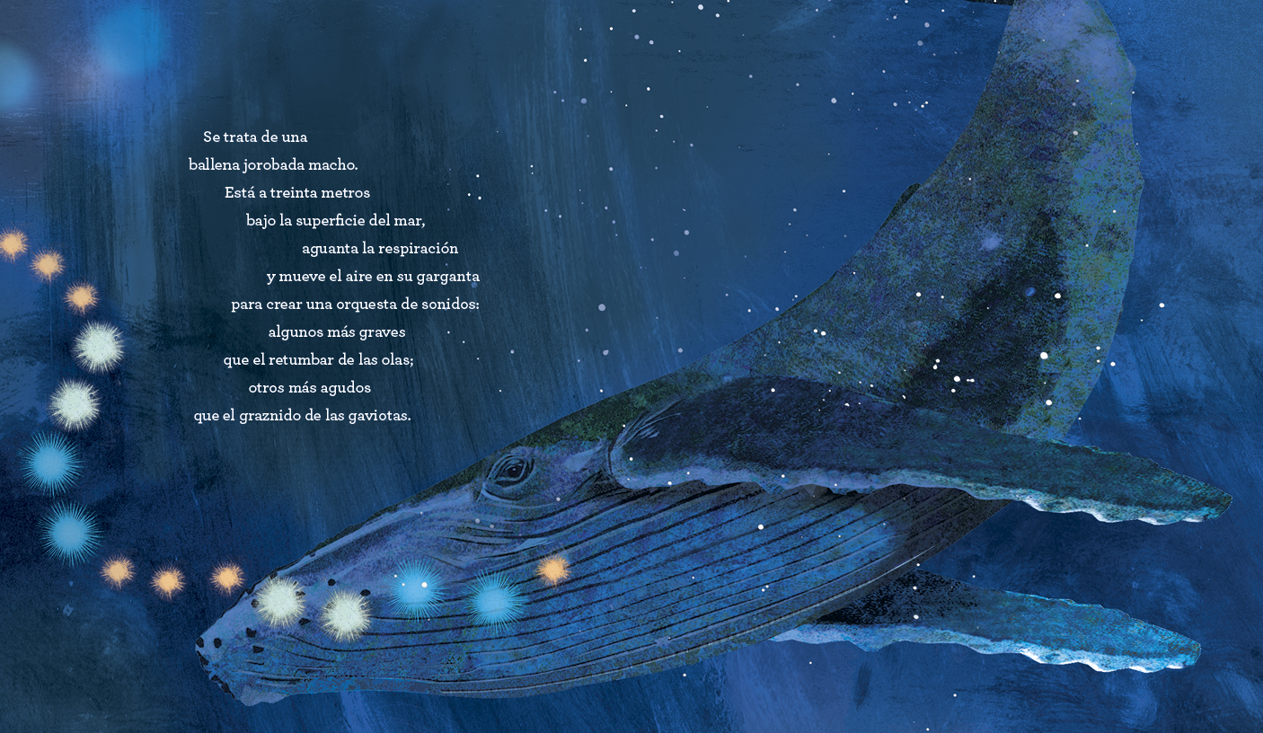 Escucha… ¿Puedes oírlo? En el fondo del mar, una ballena está cantando. Un bellísimo álbum de no ficción sobre uno de los grandes misterios de los océanos.